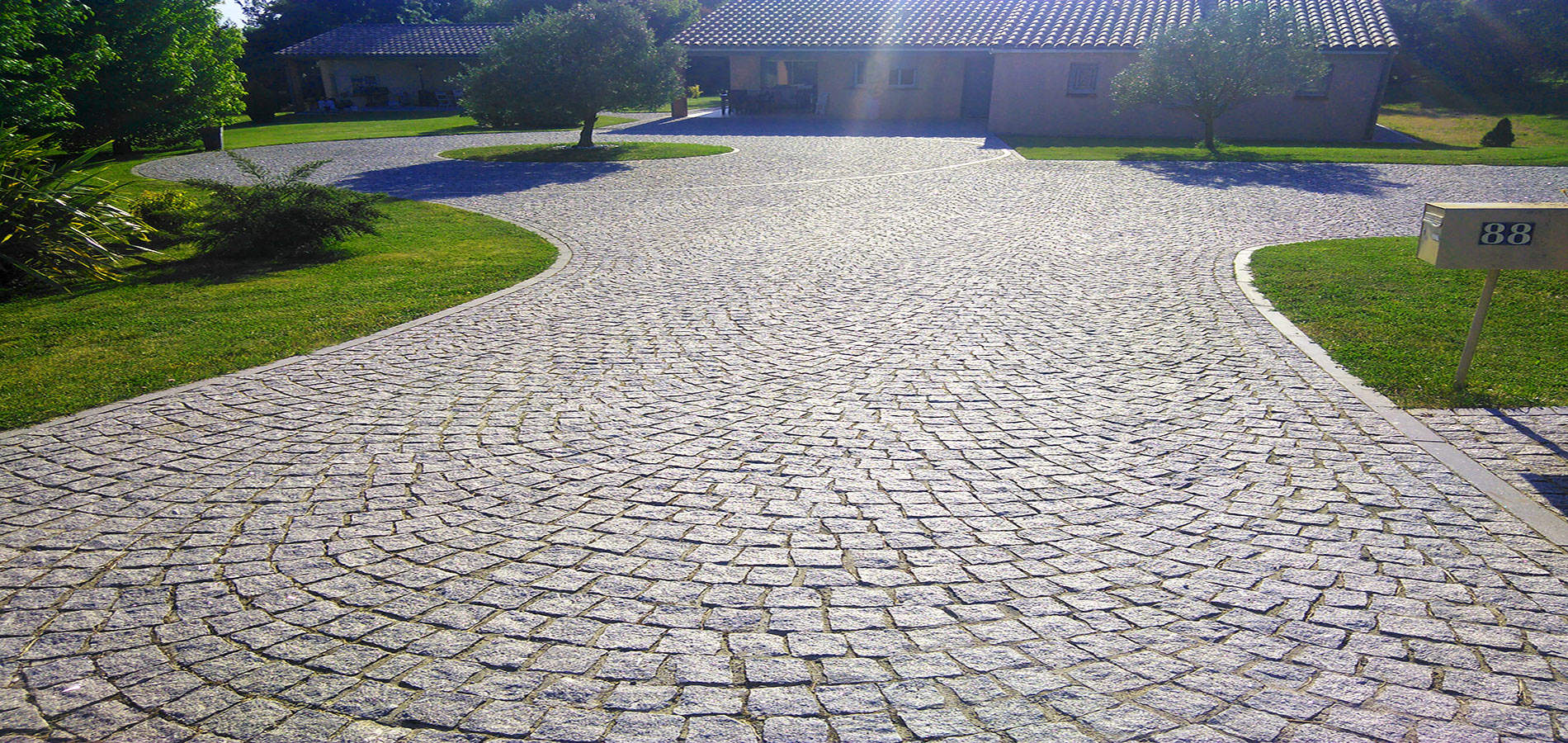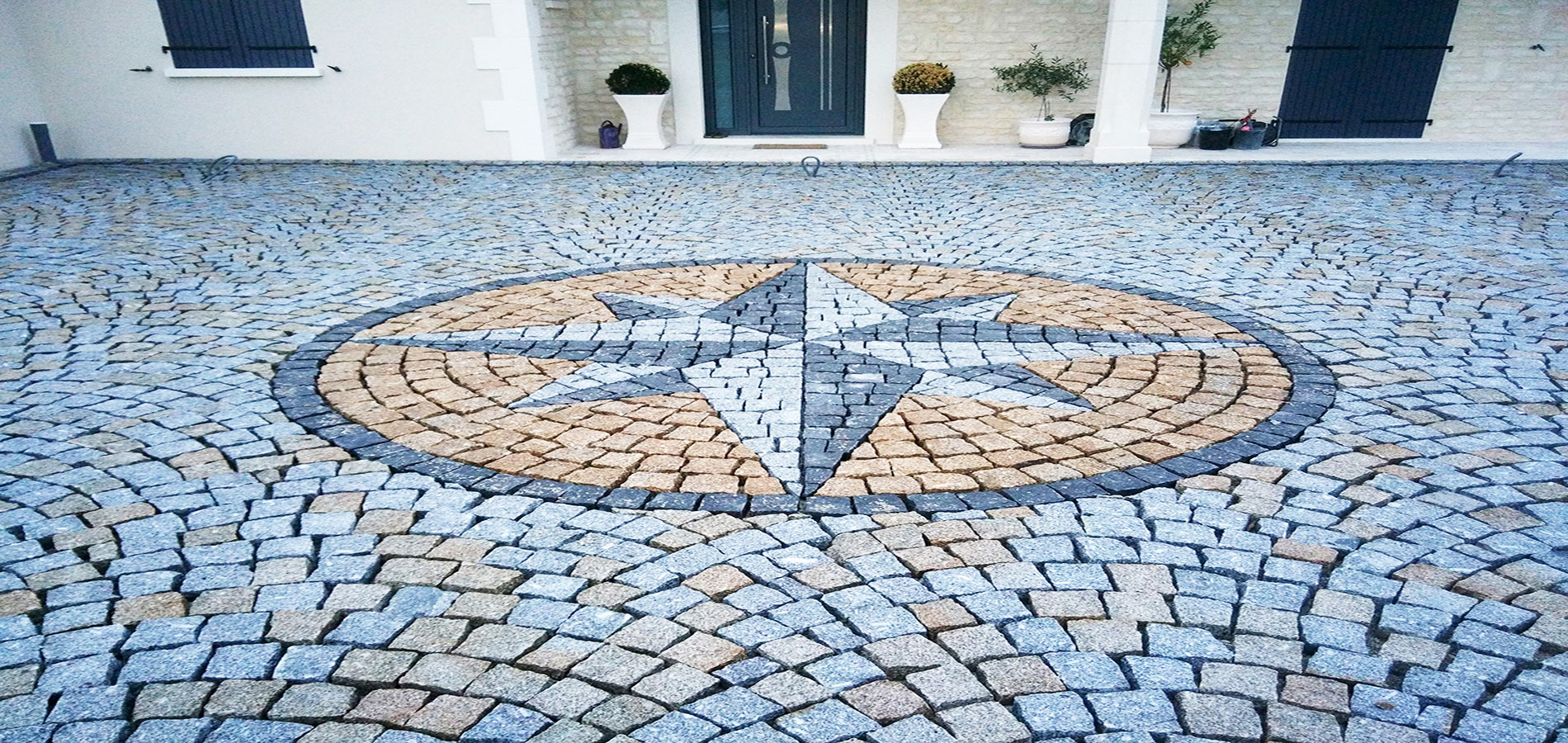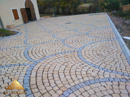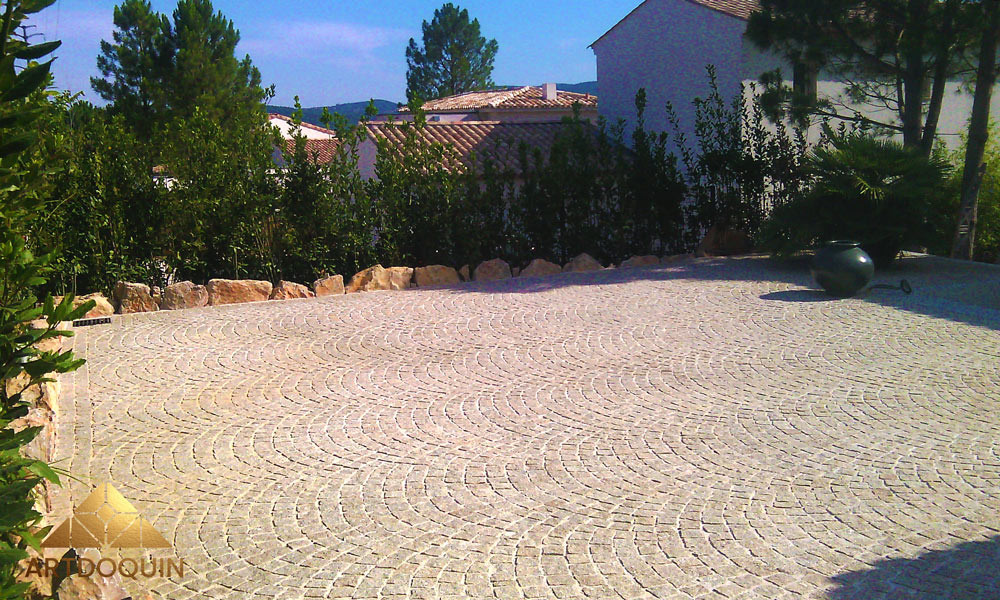 d’arrimage de pavés naturels en France. -